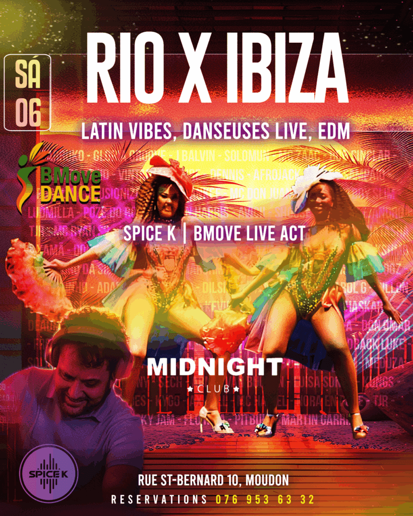 La chaleur de Rio rencontre l’énergie des clubs d’Ibiza, avec les danseuses de BrazilianMove pour insuffler une touche sensuelle et festive dès les premiers pas sur le dancefloor. Au programme : Latin Vibes, une touche de Baile Funk, Moombahton et de l’EDM en perfusion jusqu’au bout de la nuit..